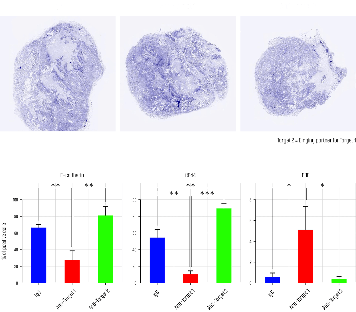 Multiplex-IHC는 하나의 조직 슬라이드에서 100개 이상의 바이오마커 발현을 동시에 확인할 수 있는 실험 기법입니다.